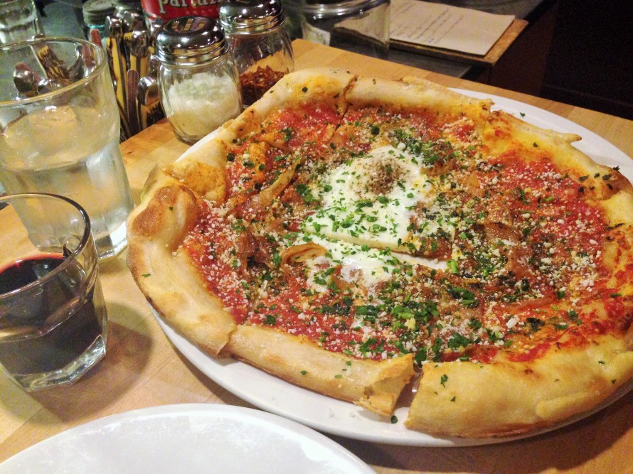 Arrabiata pizza with farm fresh egg at my local Italian joint Gialina.