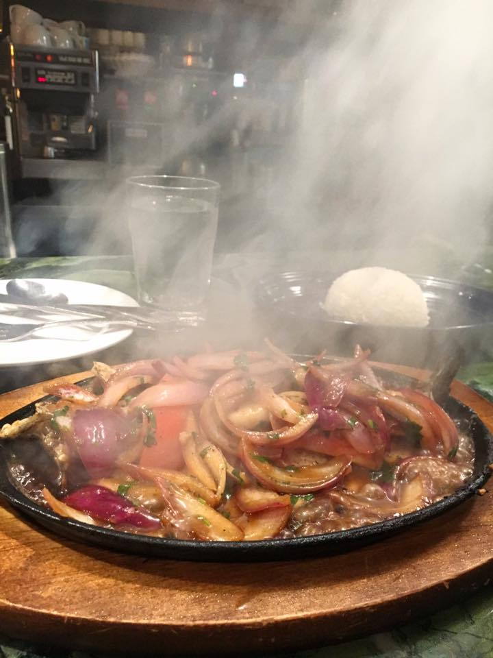 Sizzling trout with shrimp, onions & tomatoes